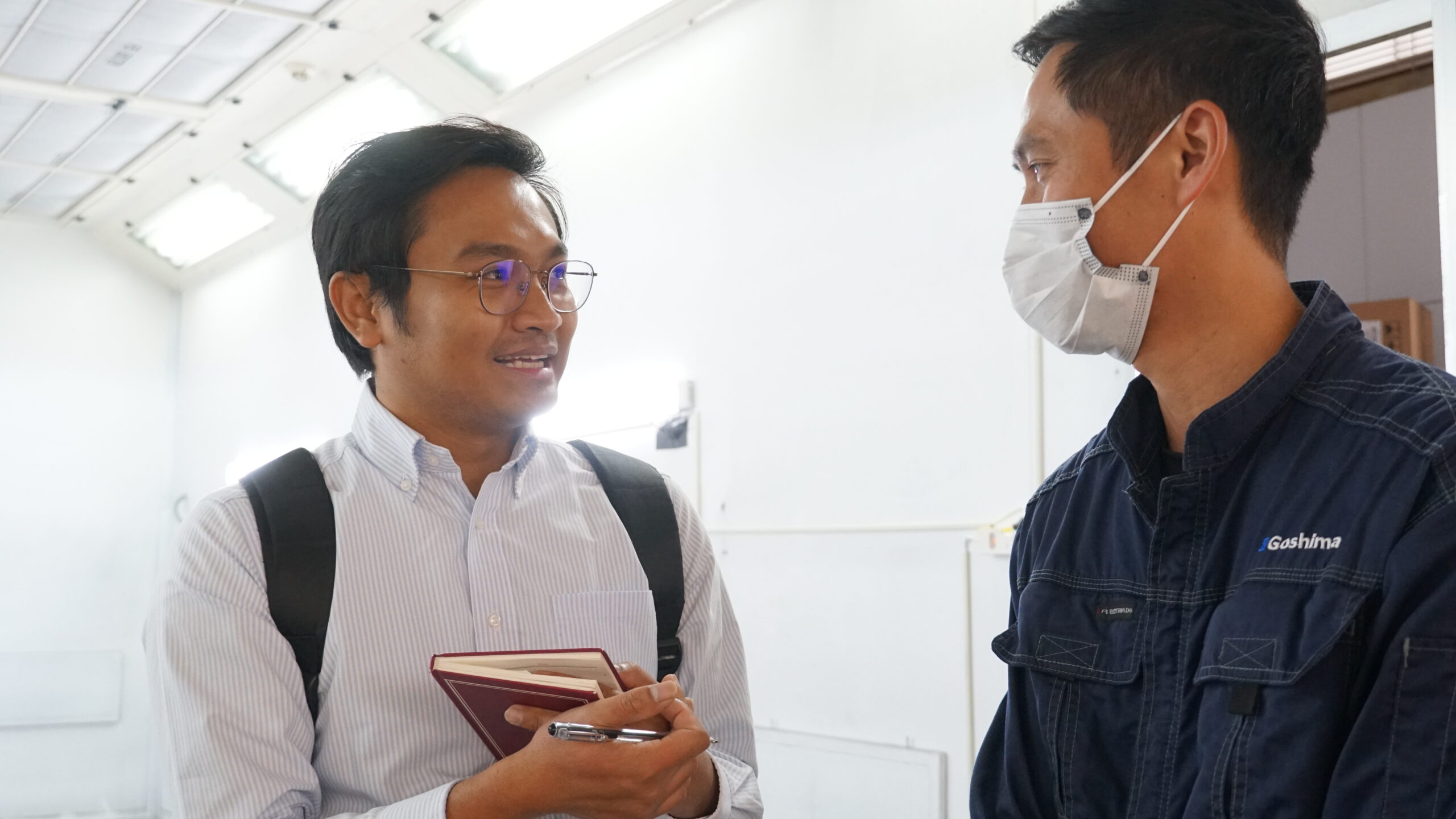 (日本の職場でベトナム人のクアンさんにインタビューをしている、